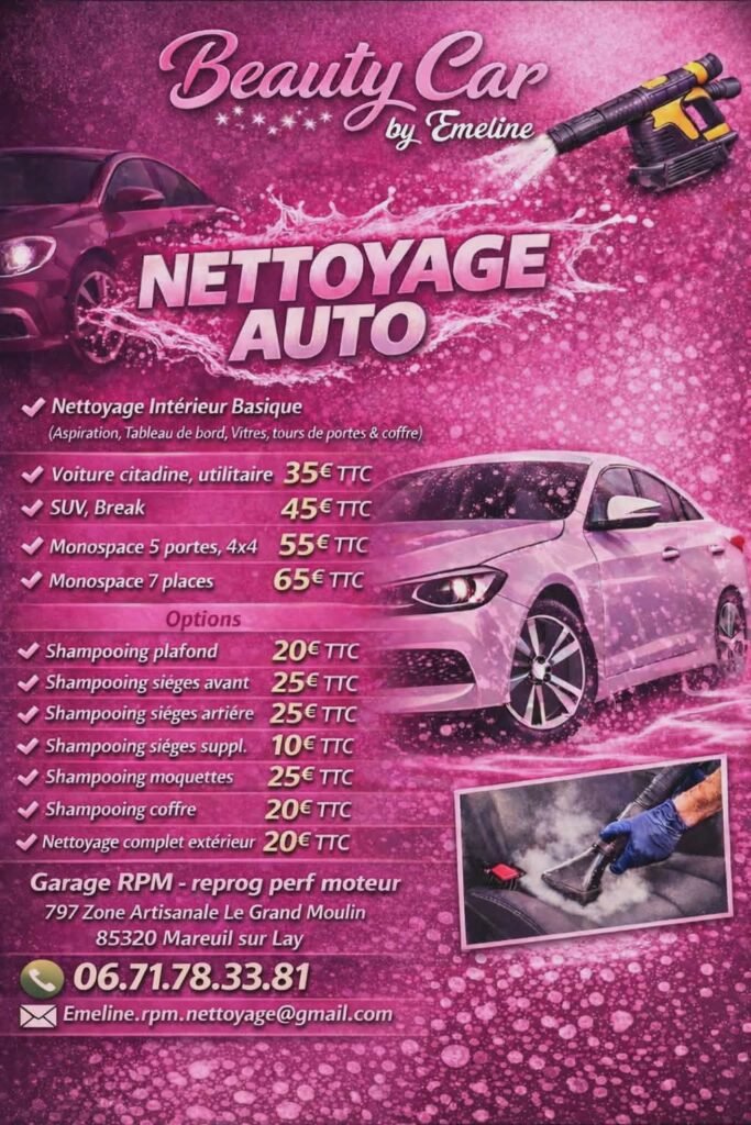 Rpm vous propose un service de nettoyage de véhicule via « Beauty Car by Emeline »